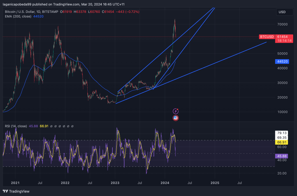 Now it’s priced at $61,450. A significant 15% in the past 7 days. For the investors that bought at the peak , it represents a steep drop in their portfolio.